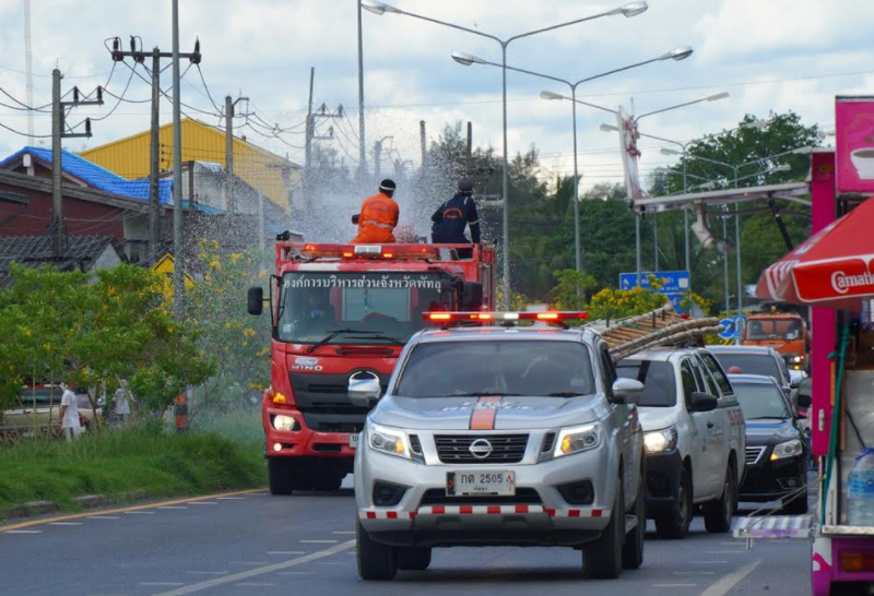 พัทลุง ฉีดพ่นยาฆ่าเชื้อชุมชน-สถานที่ท่องเที่ยว หลังพบผู้ติดเชื้อโควิด-19 ทะลุเพดานวันเดียว 20 ราย