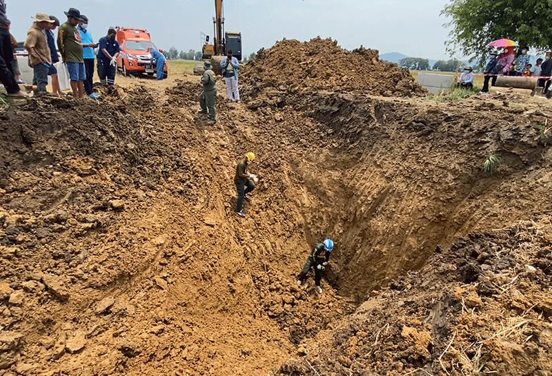 สลด! คนงานวางท่อบ่อบาดาลถูกดินสไลด์ถล่มทับร่างดับ 1 เจ็บ 2 พื้นที่ ม.10 ต.ธรรมามูล อ.เมือง จ.ชัยนาท