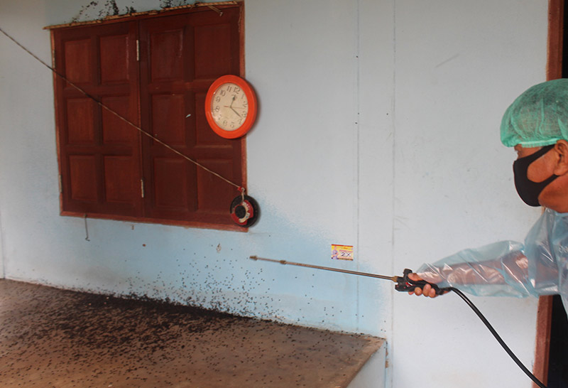 กองทัพแมลงปีกแข็งหลายแสน บุกยึดบ้านที่ จ.นครราชสีมา ขณะเจ้าหน้าที่ เร่งฉีดยากำจัด