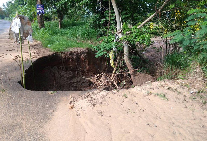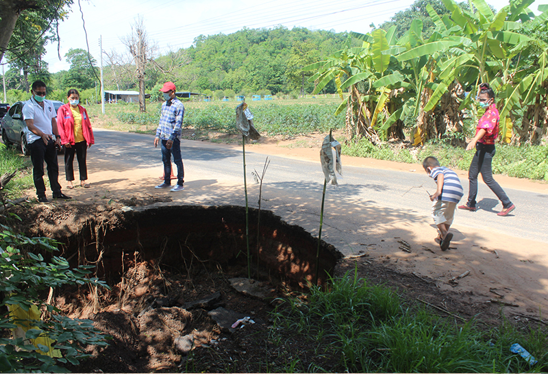 ฝนกระหน่ำโคราช ถนนท้องถิ่นครบุรียุบหนัก เป็นหลุมลึก ชาวบ้านหวั่นเกิดอันตราย เร่งแก้ไข