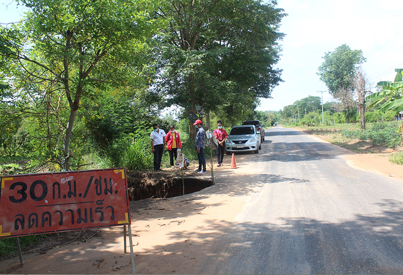นายร่วมมิตร พรปทุม รองนายกองค์การบริหารส่วนตำบลโคกกระชาย เปิดเผยว่า ถนนสายดังกล่าวเป็นทางหลวงท้องถิ่น ลาดยางอัลฟาสติก ก่อสร้างมาประมาณ 4 ปีเศษ โดยจุดนี้ถูกน้ำป่ากัดเซาะเสียหาย เป็นช่องทางน้ำเก่า ที่รับน้ำจากพื้นที่ลาดชัน และเมื่อสองวันที่ผ่านมา เกิดฝนตกหนักตลอดทั้งวัน ทำให้น้ำป่าไหลบ่าทะลักท่วมถนนและกัดเซาะจนพังเสียหายดังกล่าว ซึ่งจุดนี้เคยพังเสียหายมาแล้วครั้งหนึ่งเมื่อปีที่ผ่านมา และได้ทำการซ่อมแซมไปแล้ว แต่ในครั้งนี้ เกิดฝนตกหนักจนทำให้กลับมาพังอีกครั้ง ซึ่งทางองค์การบริหารส่วนตำบลโคกกระชาย จะได้เริ่มทำการซ่อมแซมในทันที โดยใช้งบซ่อมแซมของท้องถิ่นเพื่อความปลอดภัยของประชาชนผู้ใช้รถใช้ถนน ส่วนการแก้ไขในระยะยาว ต้องขอความร่วมมือกับเจ้าของที่ข้างเคียงเพื่อวางท่อระบายน้ำตรงจุดที่น้ำไหลผ่าน แก้ไขปัญหาที่ยั่งยืนต่อไป