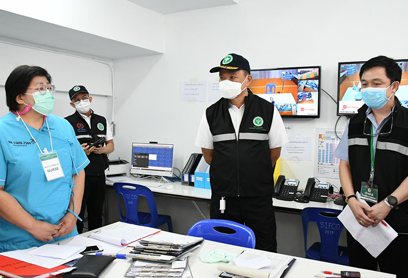 นายอนุทิน ชาญวีรกูล รองนายกรัฐมนตรีและรัฐมนตรีว่าการกระทรวงสาธารณสุข ลงพื้นที่เยี่ยมความพร้อมโรงพยาบาลสนาม ณ โรงยิมเนเซียมเทศบาลเมืองบางริ้น จ.ระนอง เพื่อใช้รองรับผู้ติดเชื้อโควิด-19 กลุ่มสีเขียว พร้อมระบุว่า จ.ระนอง เป็นจังหวัดชายแดนที่เป็นพื้นที่เศรษฐกิจมีผู้ประกอบธุรกิจรวมทั้งผู้ทำงานชาวไทยและเมียนมาเดินทางเข้า-ออกจังหวัดจำนวนมาก ซึ่งจากการคัดกรองเชิงรุกยังคงพบผู้ติดเชื้ออย่างต่อเนื่อง จึงมีความจำเป็นเร่งด่วนที่จะจัดตั้งโรงพยาบาลสนามขึ้นมารองรับผู้ติดเชื้อกลุ่มสีเขียวที่ไม่มีอาการหรืออาการน้อย เพื่อตัดวงจรการแพร่เชื้อให้ผู้อื่นโดยเฉพาะคนในครอบครัว