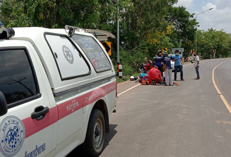 เจ้าหน้าที่ตำรวจ สภ.ชุมพวง จังหวัดนครราชสีมา ได้รับแจ้งเกิดอุบัติเหตุรถจักรยานยนต์เสียหลักหลุดโค้ง บริเวณบ้านท่าลาด อำเภอชุมพวง จังหวัดนครราชสีมา มีผู้ได้รับบาดเจ็บ 1 ราย จึงประสานหน่วยกู้ชีพ อบต.ท่าลาด ร่วมตรวจสอบที่เกิดเหตุ โดยพบรถจักรยานยนต์ ยี่ห้อฮอนด้า เวฟ สีแดง ไม่ติดแผ่นป้ายทะเบียน ล้มคว่ำอยู่กลางถนน สภาพด้านหน้ารถพังเล็กน้อย ห่างออกไปประมาณ 20 เมตร พบผู้บาดเจ็บ เป็นหญิง 1 ราย นอนร้องครวญครางอยู่ริมถนน มีชาวบ้านช่วยกันปฐมพยาบาล ก่อนที่ทางเจ้าหน้าที่หน่วยกู้ชีพ อบต.ท่าลาด จะนำตัวผู้บาดเจ็บส่งรักษาที่โรงพยาบาลชุมพวง