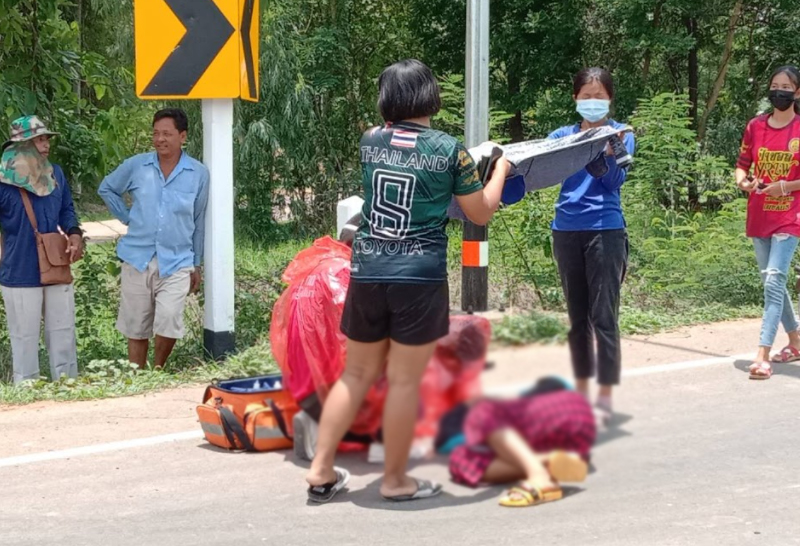 สาววัย 15 ปี ซิ่งจยย.กลับจากบ้านเพื่อน เสียหลักหลุดโค้งบาดเจ็บ นอนร้องครวญครางอยู่ริมถนน