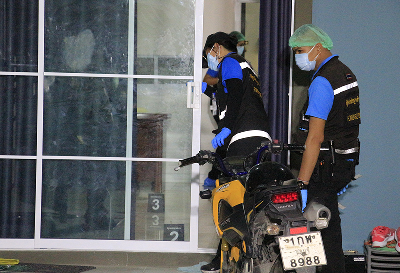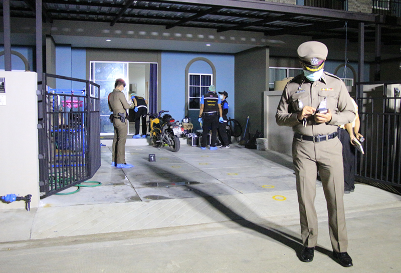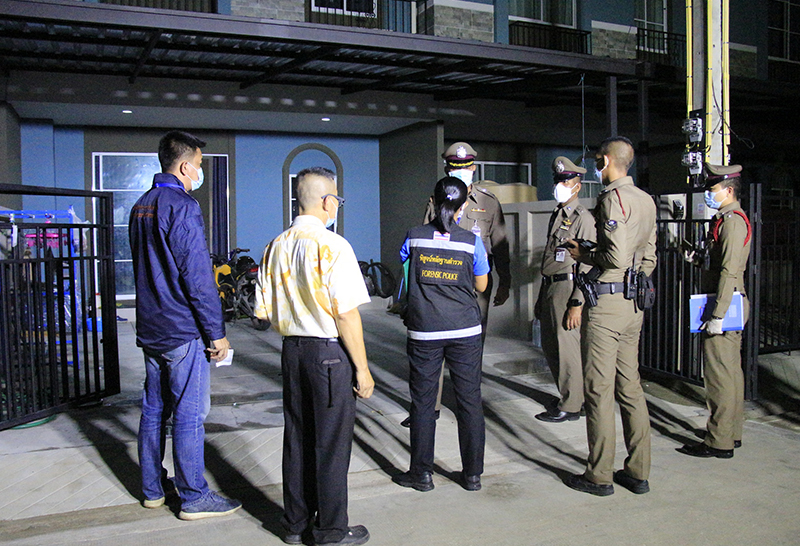 เบื้องต้น พ.ต.อ.ศักดิ์ชาย สุวรรณนุกูล ผกก.สภ.บางละมุง ได้สั่งการให้เจ้าหน้าที่ชุดสืบสวนลงพื้นที่หาข่าว เมื่อทราบตัวผู้ก่อเหตุคือภรรยาของผู้ตาย ซึ่งอยู่กินกันมาประมาณ 3 ปีมีลูกด้วยกันสองคน เป็นผู้ชายอายุประมาณ 1 ขวบครึ่ง และคนเล็กเป็นผู้หญิงอายุประมาณ 3 เดือน โดยปมเหตุคาดว่าน่าเกิดจากความหึงหวง คิดว่าฝ่ายสามีไปมีหญิงอื่น จึงสั่งให้ชุดสืบสวนกระจายกำลังติดตามตัว ซึ่งทราบแล้วว่าผู้ก่อเหตุหลบหนีไปรักษาตัวเนื่องจากมีอาการบาดเจ็บ อย่างไรก็ตามขอเวลาให้เจ้าหน้าที่ทำงานเชื่อว่าไม่นานจะได้ตัวมาดำเนินคดีตามกฎหมาย