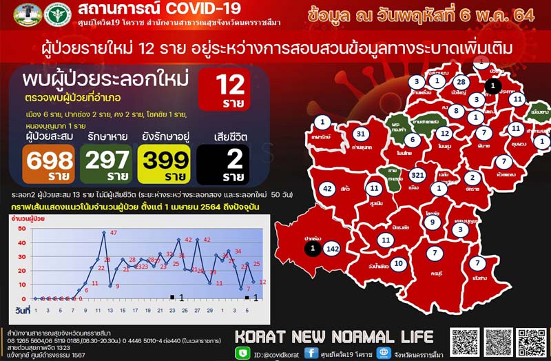 โคราชเสียชีวิตจากโควิด-19 เพิ่มอีก 1 ราย ที่ครบุรี หญิงวัย 47 ปี รวมเป็น 3 รายแล้ว