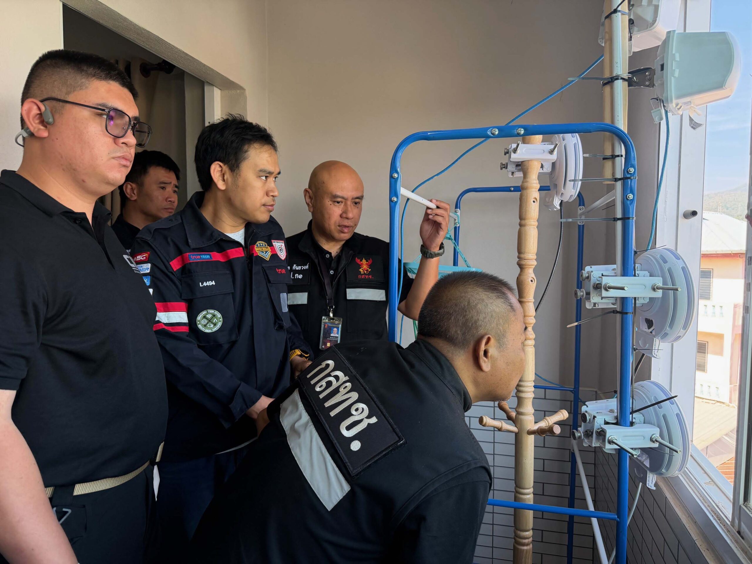 บรรยายภาพ: ธัญพัฒน์ ตั้งทวีทอง หัวหน้าฝ่ายปฏิบัติการรัฐกิจสัมพันธ์ บริษัท ทรู คอร์ปอเรชั่น จำกัด (มหาชน) นำทีมร่วมกับ พ.ต.ท.ตฤณ ลีลานุช สารวัตรกลุ่มงานสนับสนุน คดีเทคโนโลยี บก.ปอท. สอบสวนกลาง และ สำนักงาน กสทช. ร่วมกันเข้าตรวจอาคารต้องสงสัย อ.แม่สาย จ.เชียงรายตัดอุปกรณ์ส่งเน็ตข้ามแดน เร่งขยายผลเครือข่ายปราบมิจฉาชีพ