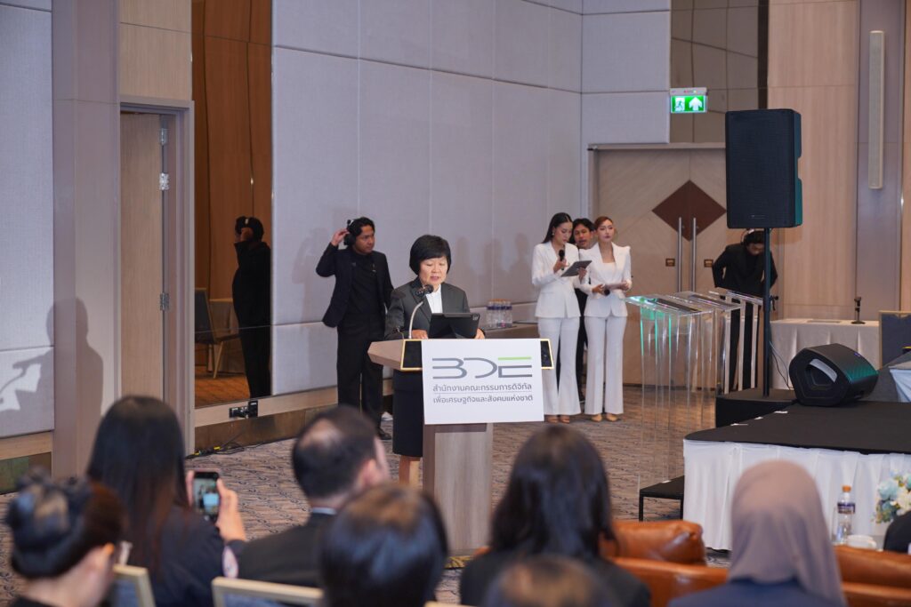 กระทรวงดิจิทัลเพื่อเศรษฐกิจและสังคม โดยสำนักงานคณะกรรมการดิจิทัลเพื่อเศรษฐกิจและสังคมแห่งชาติ (BDE : National Board of Digital Economy and Society) จัดงานแถลงข่าวเปิดตัวและพิธีลงนามบันทึกความเข้าใจ (MOU) “โครงการพัฒนาแพลตฟอร์มภาครัฐเพื่อรองรับการพัฒนาทักษะดิจิทัล เรียนรู้ มีรายได้ เรียนรู้ง่ายตลอดชีวิต หรือ BDE Learn to Earn” ณ ห้องประชุม Asawin Ballroom A โรงแรม Asawin Grand Convention กรุงเทพฯ โดยมีนายเวทางค์ พ่วงทรัพย์ เลขาธิการคณะกรรมการดิจิทัลเพื่อเศรษฐกิจและสังคมแห่งชาติ เป็นประธานในพิธีเปิด พร้อมด้วยนางสาวพลอยรวี เกริกพันธ์กุล ผู้อำนวยการกองขับเคลื่อนดิจิทัลเพื่อสังคม กล่าวรายงานวัตถุประสงค์และแนวทางดำเนินโครงการ โดยผู้เข้าร่วมงานมาจากทั้งหน่วยงานภาครัฐ ภาคเอกชน สถาบันการศึกษา และสื่อมวลชน