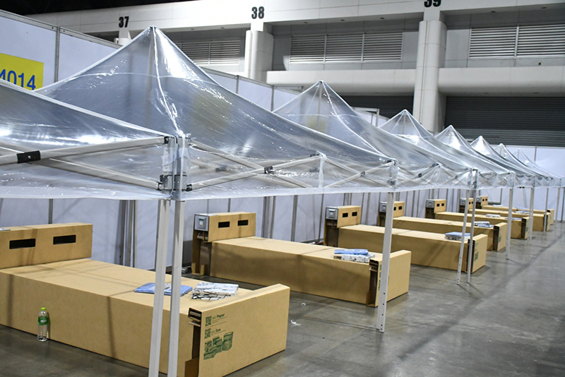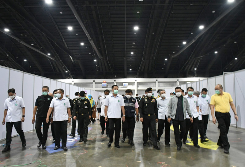 พร้อมติดตั้งท่อช่วยหายใจบริเวณหัวเตียงรองรับผู้ติดเชื้อสีเหลือง ที่จำเป็นต้องใช้เครื่องช่วยหายใจเรียบร้อยแล้ว และเช้าวันนี้ พล.อ.นเรนทร สิริภูบาล ผู้บัญชาการหน่วยบัญชาการทหารพัฒนา กองบัญชาการกองทัพไทย ได้นำกำลังพลพร้อมจิตอาสา 485 คน ร่วมกันประกอบเตียงกระดาษและเครื่องนอนที่ได้รับบริจาค จำนวน 1,200 เตียง กรมสนับสนุนบริการสุขภาพ ร่วมกับสมาคมวิศวกรรมปรับอากาศ ติดตั้งตู้ไอซียูความดันลบ จำนวน 100 ตู้ รวมทั้งได้รับการสนับสนุนจากภาคเอกชน ติดตั้งห้องอาบน้ำพร้อมอุปกรณ์ ที่ได้รับบริจาคจำนวน 364 ห้อง มีอุปกรณ์ฆ่าเชื้อด้วยรังสียูวีในอากาศ ในห้องและบนพื้นผิวสำหรับห้องน้ำ