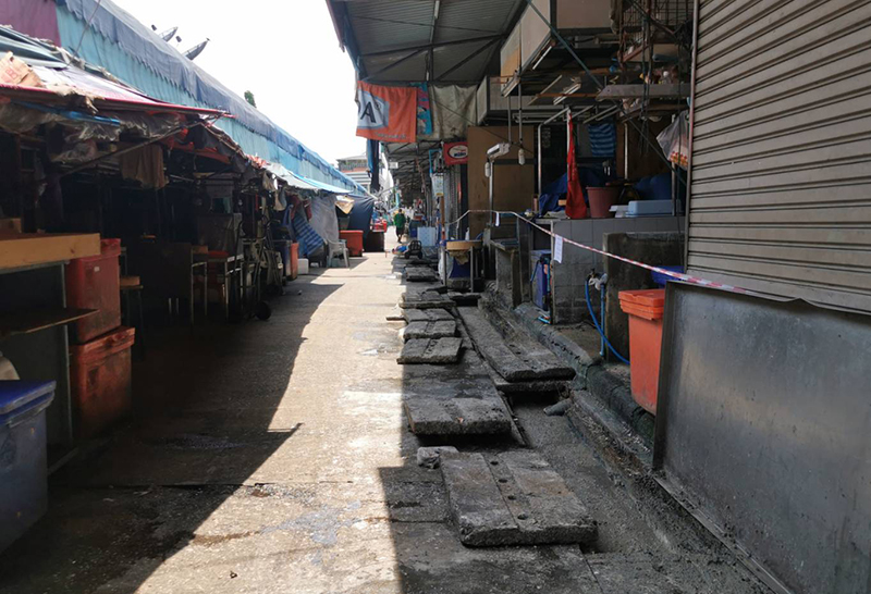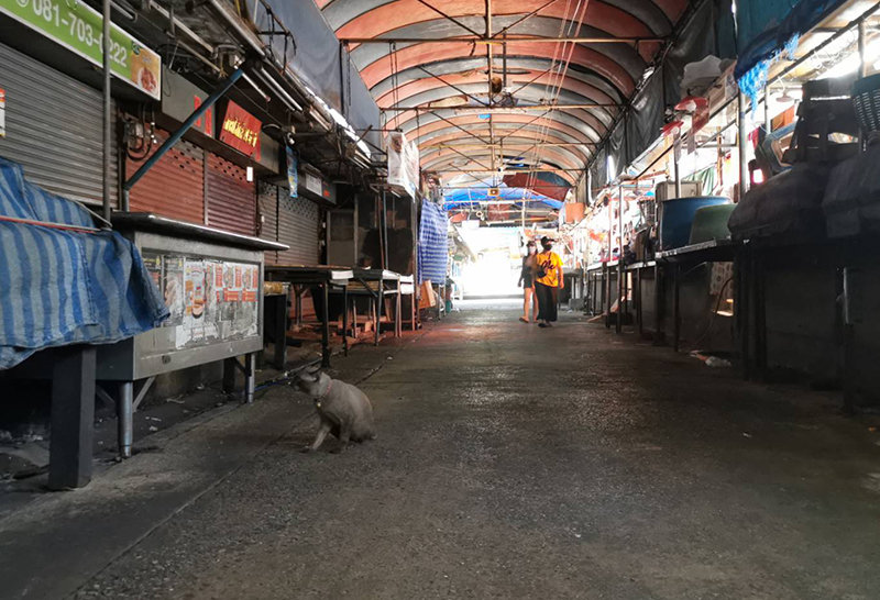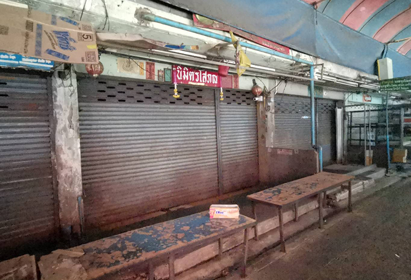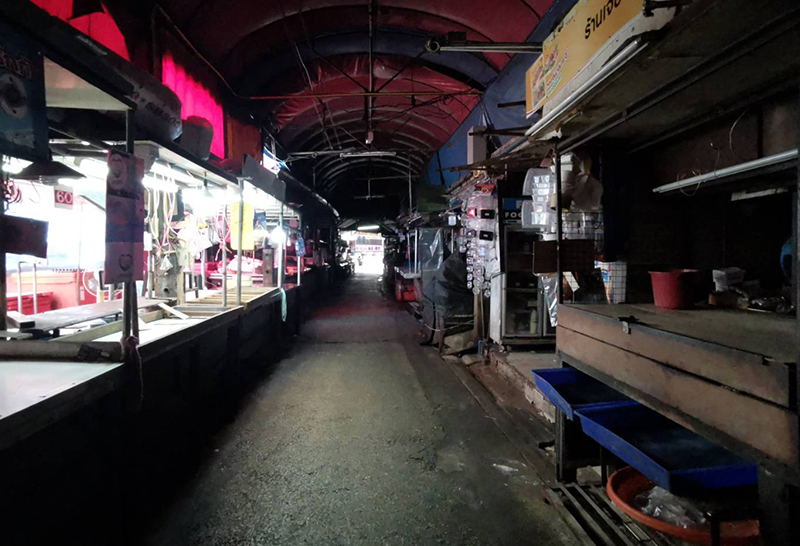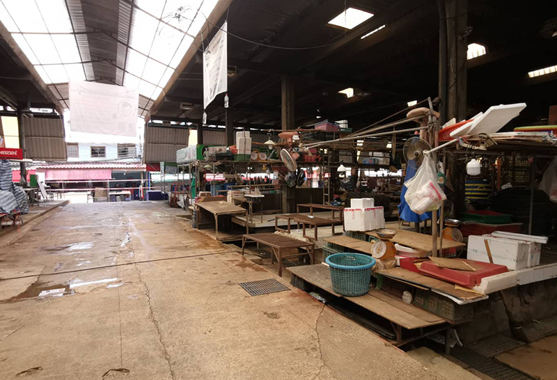 ส่วนบรรยากาศบริเวณทางเข้า-ออกตลาด พบว่ามีการนำป้ายประกาศมาติดแจ้งให้ประชาชนทราบว่ามีการปิดชั่วคราว 3 วัน และมีการนำเส้นกั้นเขตอันตรายมากันพื้นที่โดยรอบ ส่วน แผงร้านค้าของลูกค้า ภายในตลาดมีการนำเก้าอี้และอุปกรณ์ในการขายจัดเก็บอย่างเรียบร้อยเพื่อรอการกลับมาเปิดตลาดอีกครั้ง