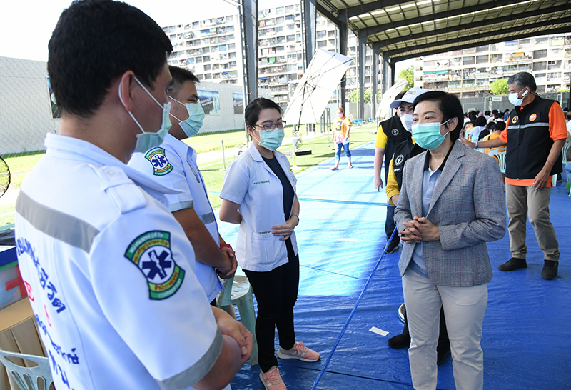 นางวัลยา วัฒนรัตน์ รองปลัดกรุงเทพมหานคร ลงพื้นที่ตรวจเยี่ยมการให้บริการฉีดวัคซีน เข็มที่ 2 แก่ประชาชนในชุมชนที่มีการระบาดในพื้นที่เขตปทุมวัน พร้อมให้กำลังใจบุคลากรทางการแพทย์ที่ปฏิบัติหน้าที่ โดยมี นางมาศวัลย์ ปิ่นสุวรรณ ผู้อำนวยการเขตปทุมวัน พร้อมด้วยคณะผู้บริหารเขตปทุมวัน เจ้าหน้าที่ศูนย์บริการสาธารณสุขที่เกี่ยวข้อง ร่วมลงพื้นที่และรายงานข้อมูล ณ บริเวณสนามโปโล ฟุตบอล พาร์ค และ วัดพระมหาไถ่ เขตปทุมวัน
