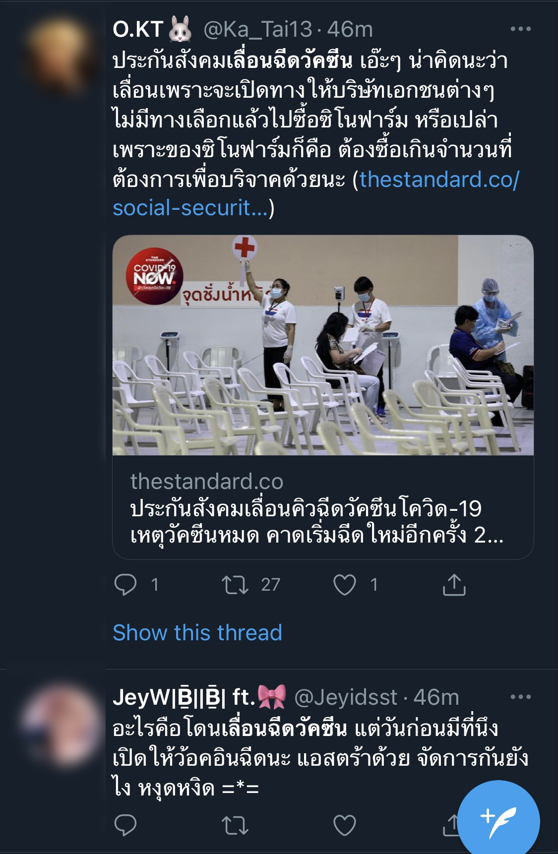 โซเชียลจวกปม เลื่อนฉีดวัคซีน โควิด-19 ให้ผู้ประกันตน ม.33 พร้อมตั้งข้อสังเกตมีวัคซีนไม่เพียงพอ บางรายไปถึงหน้างานแล้วแต่จนท.แจ้งให้กลับบ้าน
