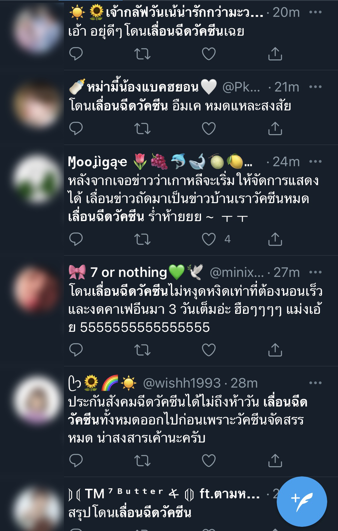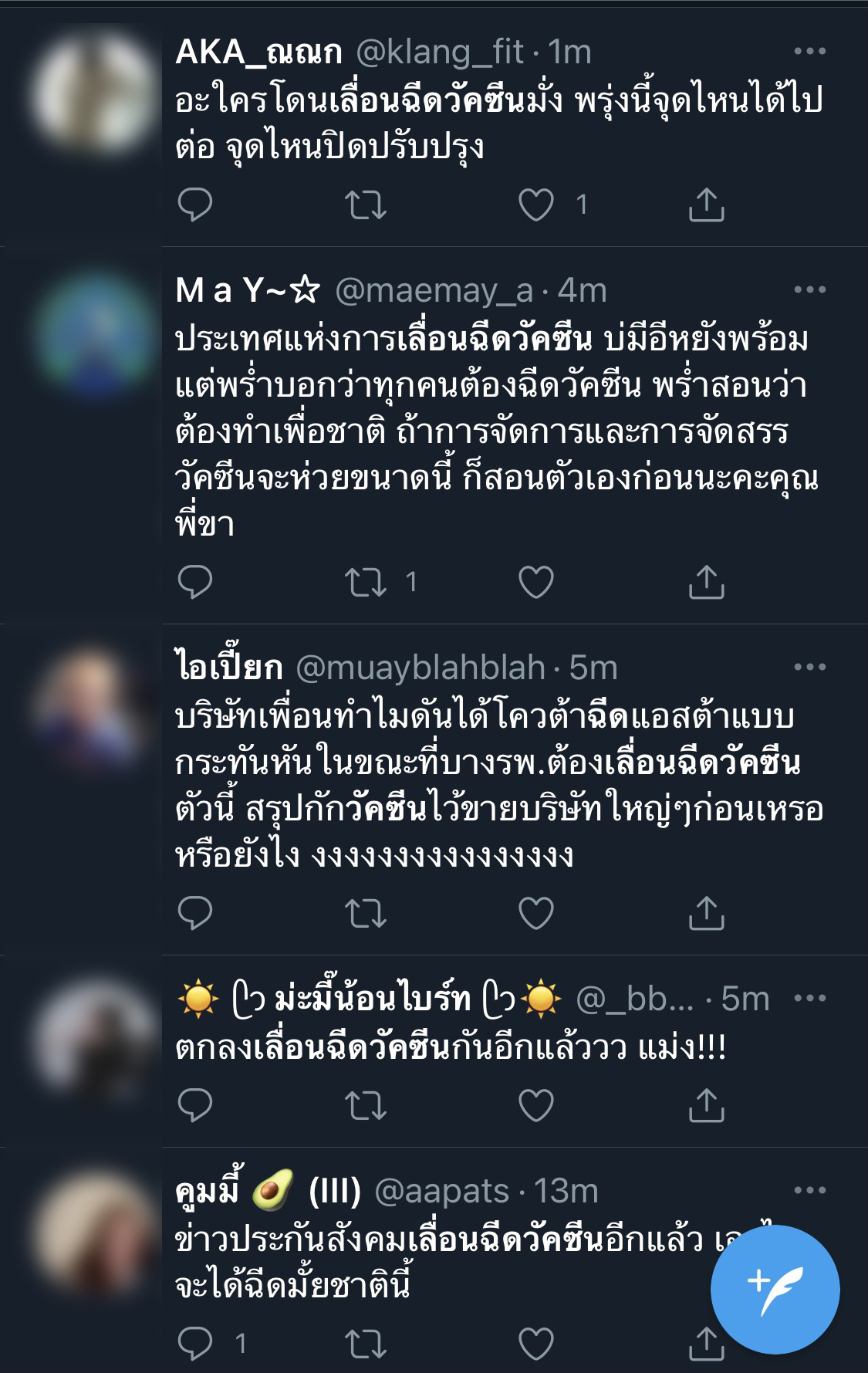 ซึ่งภายหลังมีการเผยแพร่ข้อมูลดังกล่าวออกไปก็พบว่า โลกโซเชียลทั้ง ผู้ใช้เฟซบุ๊คและทวิตเตอร์ ต่างโพสต์วิจารณ์และแสดงข้อความ ไม่เห็นด้วยที่ได้รับการแจ้งเลื่อนการฉีด วัคซีน
