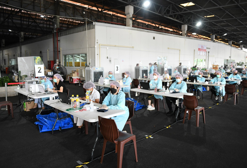 ผู้ว่าราชการกรุงเทพมหานคร เปิดเผยว่า วันนี้เป็นวันที่ 5 ของการฉีดวัคซีนให้กับประชาชนที่ลงทะเบียนผ่าน www.ไทยร่วมใจ.com แอปพลิเคชันเป๋าตัง และร้านสะดวกซื้อ ตามที่กรุงเทพมหานครกำหนด ซึ่งทั้ง 25 ศูนย์ฉีดวัคซีนที่ให้บริการเป็นไปด้วยความเรียบร้อย สรุปยอดผู้ได้รับวัคซีน ณ หน่วยความร่วมมือบริการวัคซีนนอกโรงพยาบาล 25 ศูนย์ ในพื้นที่กรุงเทพมหานคร ประจำวันที่ 10 มิ.ย. 64 มีผู้ได้รับวัคซีน จำนวน 14,114 คน รวมสะสม (7-10 มิ.ย. 64) มีผู้ได้รับวัคซีน จำนวน 55,686 คน ซึ่งในช่วงแรกของการฉีดวัคซีนระหว่างวันที่ 7-14 มิ.ย. 64 แต่ละหน่วยบริการจะให้บริการวัคซีนแก่ประชาชนได้จำนวน 500-590 คน/วัน หลังจากนั้นตั้งแต่วันที่ 15 มิ.ย. 64 เป็นต้นไปจะเพิ่มศักยภาพการฉีดตามจำนวนวัคซีนที่ได้รับการจัดสรรจากกระทรวงสาธารณสุข ซึ่งรวมทุกจุดมีความพร้อมที่จะฉีดวัคซีนเต็มศักยภาพที่ได้กำหนดไว้คือ 50,000–70,000 คน/วัน โดยจะกระจายฉีดให้ประชาชนทั้ง 25 จุด ทุกวันจนครบ 2 เข็ม เพื่ออำนวยความสะดวกให้ประชาชนที่ไม่ได้เข้าไปฉีดวัคซีนที่โรงพยาบาล ซึ่งทุกแห่งจะเปิดให้บริการต่อเนื่อง 7 เดือน เพื่อให้การบริการวัคซีนเป็นไปอย่างทั่วถึง รวดเร็ว และปลอดภัยสำหรับประชาชน และขอยืนยันว่ารัฐบาลได้จัดสรรวัคซีนให้กับกรุงเทพมหานครอย่างเพียงพอ ขอให้ประชาชนมั่นใจว่าผู้ที่มีความประสงค์จะฉีดวัคซีนและลงทะเบียนไว้จะได้รับการฉีดวัคซีนครบทุกคนภายในสิ้นปีนี้