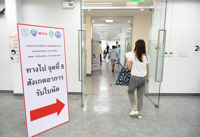 พล.ต.อ.อัศวิน ขวัญเมือง ผู้ว่าราชการกรุงเทพมหานคร ตรวจเยี่ยมจุดบริการฉีดวัคซีนนอก รพ. “หน่วยความร่วมมือบริการฉีดวัคซีนโควิด-19 กรุงเทพมหานคร – หอการค้าไทย” ณ SCG (เอสซีจี) สำนักงานใหญ่ บางซื่อ และ ศูนย์การค้า The Street รัชดา เขตดินแดง โดยมีผู้เกี่ยวข้อง ร่วม สำหรับสถานที่ฉีดวัคซีนนอกโรงพยาบาล ณ ศูนย์ฉีดวัคซีนเอสซีจีตั้งอยู่ในสำนักงานใหญ่ เอสซีจี บนพื้นที่ขนาด 2,500 ตารางเมตร เป็นหนึ่งใน 25 จุดฉีดวัคซีนนอกโรงพยาบาลของกรุงเทพมหานคร โดยความร่วมมือของ กทม. หอการค้าไทย เอสซีจี สำนักอนามัย และสภาการพยาบาล เพื่อให้บริการแก่ประชาชนทั่วไปได้อย่างรวดเร็วและทั่วถึง โดยมีทีมแพทย์-พยาบาล และทีมจิตอาสา กว่า 250 คน ให้บริการ ซึ่งเปิดให้บริการทุกวันตั้งแต่เวลา 09.00-14.30 น. บริเวณอาคาร 30B สามารถให้บริการฉีดวัคซีน จำนวน 500 คน/วัน ผู้ที่จะมารับการฉีดวัคซีนสามารถสอบถามข้อมูลและเส้นทางเพิ่มเติมได้ที่ Call Center โทร. 0 2586 1444
