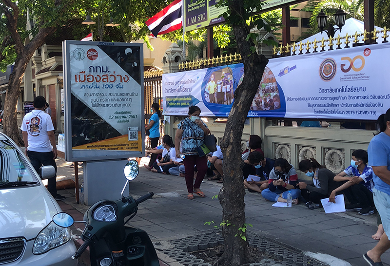 ประชาชนแห่ตรวจโควิด-19 เชิงรุกเขตบางกอกใหญ่ ที่วิทยาลัยเทคโนโลยีสยาม จำนวนมาก รับ 1,000 คิว