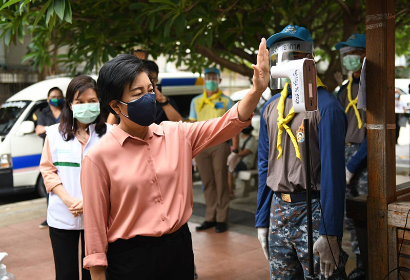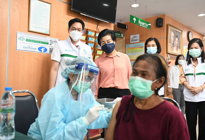 นางศิลปสวย ระวีแสงสูรย์ ปลัดกรุงเทพมหานคร ตรวจเยี่ยมทีมปฏิบัติการป้องกันและแก้ไขปัญหาโควิด-19 เชิงรุก Comprehensive Covid-19 Response Team (CCRT) เพื่อป้องกันและแก้ไขปัญหาโควิด-19 เชิงรุกในชุมชน โดยการตรวจคัดกรองด้วยชุดตรวจ Antigen Test Kit ที่ศูนย์สาธารณสุข 56 (ทับเจริญ) เขตบึงกุ่ม