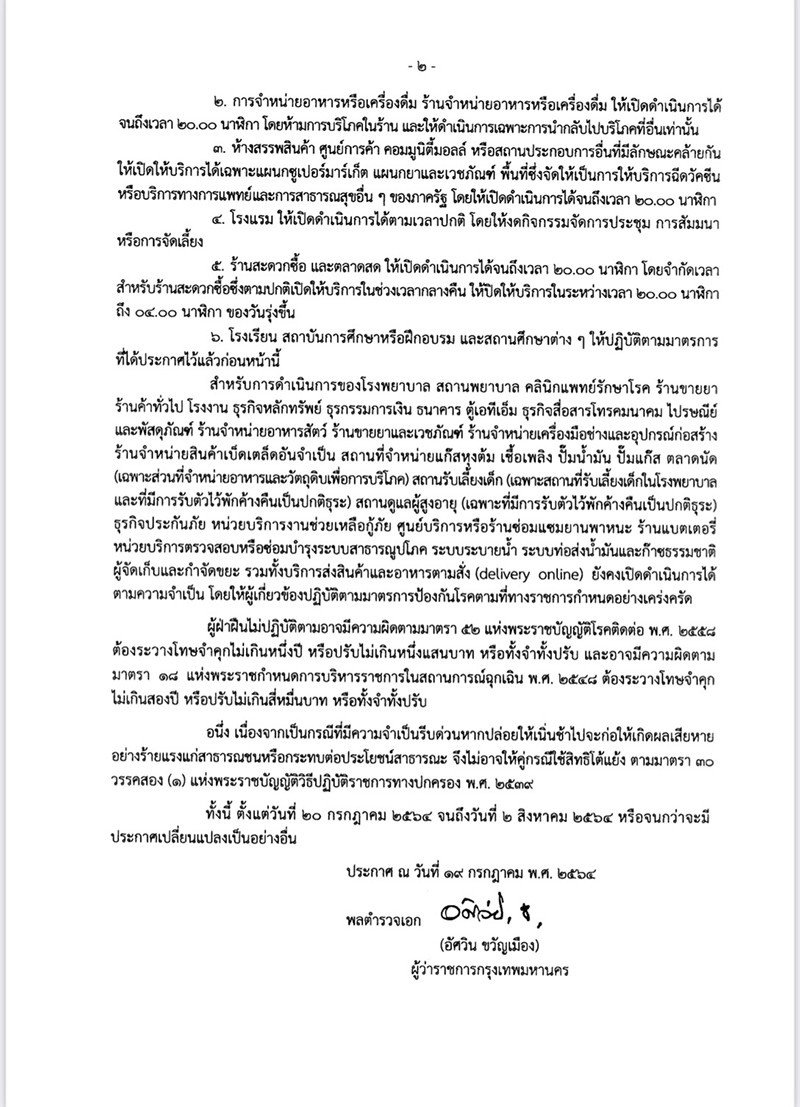 ทั้งนี้ มีผลตั้งแต่วันที่ 20 ก.ค. – 2 ส.ค. 64 หรือจนกว่าจะมีประกาศเปลี่ยนแปลงเป็นอย่างอื่น ประกาศ ณ วันที่ 19 ก.ค. 64