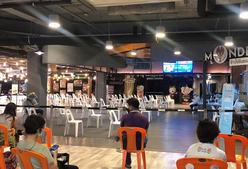 บรรยากาศการฉีดวัคซีนที่เดอะสตรีทรัชดาวันที่ 2 หลังจากวานนี้มีการ ฉีดวัคซีน เป็นวันแรก หลังถูกเลื่อนมาจากเมื่อวันที่ 19-23 มิ.ย.64 ที่ผ่านมาเป็นวันที่ 22-26 ก.ค.64