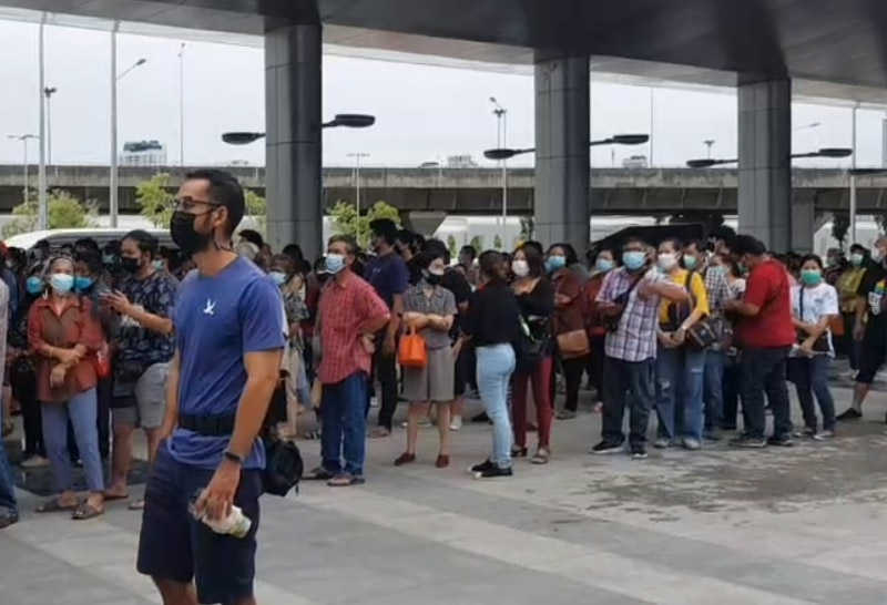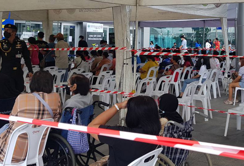 ศูนย์ฉีดวัคซีนกลางบางซื่อ วันหยุด ปชช.Walk in เข้าฉีดวัคซีนต่อแถวยาว ขณะเจ้าหน้าอำนวยความสะดวก จัดระเบียบเว้นระยะห่าง