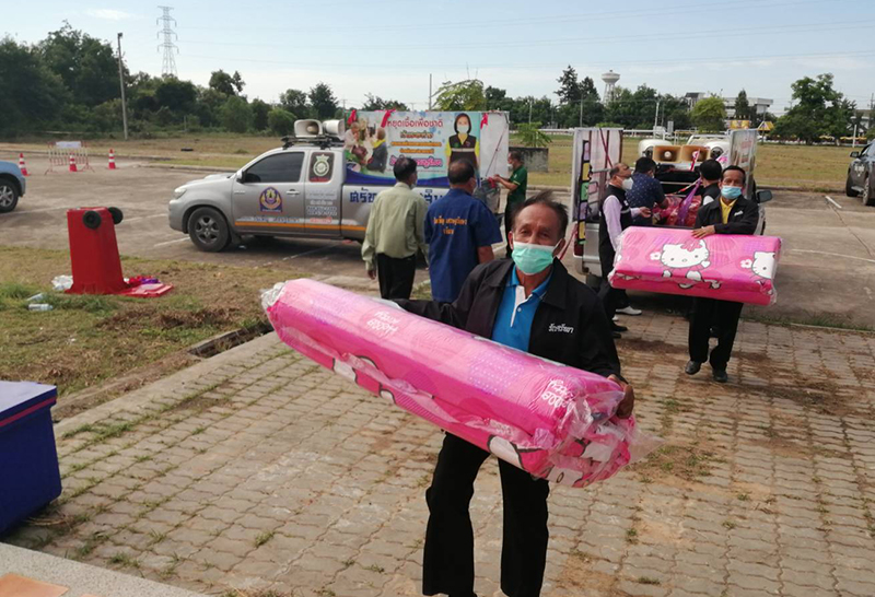 กาฬสินธุ์จัดผ้าห่มที่นอนหมอนมุ้งเปิดรพ.สนามเพิ่มรับผู้ป่วยโควิด-19 ขอกลับบ้าน