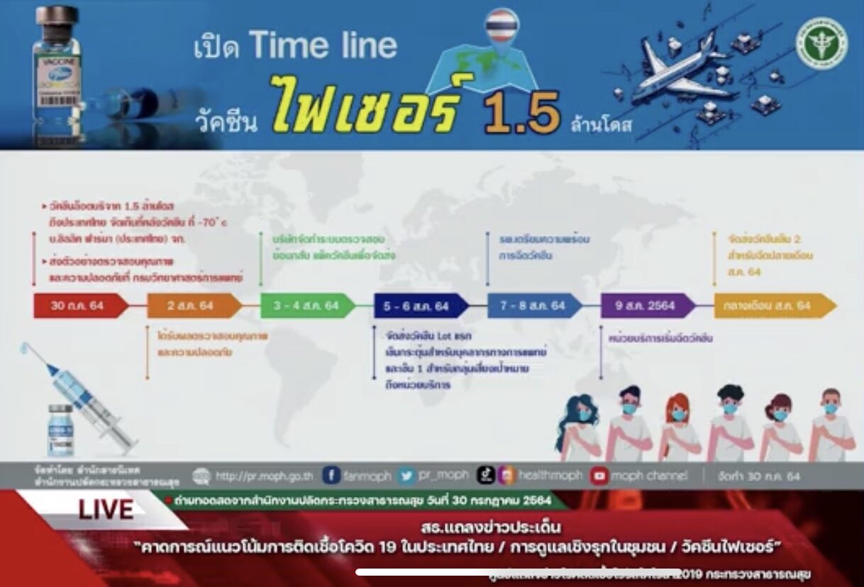 อธิบดีกรมควบคุมโรค ยังกล่าวว่า วัคซีนไฟเซอร์ ในจำนวน 1 ขวดที่ส่งมาจากอเมริกา จะเป็นวัคซีนเข้มข้นจากนั้นจะต้องมีการผสมด้วยน้ำเกลือ 9% นอร์มัลซาไลน์ เมื่อผสมเสร็จแล้วจะฉีดได้ 6 โดส ฉีดโดสละ 0.3 มล. โดยฉีดเข้ากล้ามเนื้อ ซึ่งการฉีด 2 เข็มจะห่างกันอยู่ที่ 3 สัปดาห์ ฉีดได้ตั้งแต่ผู้ที่มีอายุ 12 ปีขึ้นไป และต้องเก็บในอุณหภูมิ -90 ถึง -60 องศาเซลเซียส จะอยู่ได้ 6 เดือน หาก เก็บในอุณหภูมิ 2 ถึง 8 องศาเซลเซียสเหมือนวัคซีนอื่นๆ จะเก็บได้เพียง 1 เดือน ดังนั้น จะต้องมีการวางแผนในการเก็บรักษาอย่างดี ซึ่งขณะนี้ได้ส่งตัวอย่างตรวจสอบคุณภาพและความปลอดภัยไปที่กรมวิทยาศาสตร์การแพทย์ ในวันที่ 2 ส.ค. จะได้รับผลตรวจสอบคุณภาพและความปลอดภัย จากนั้น 3-4 ส.ค. บริษัทจัดทำระบบตรวจสอบย้อนกลับและแพ็ควัคซีนเพื่อจัดส่ง จากนั้น 5-6 ส.ค. คาดว่า จะจัดส่งวัคซีนลอตแรกเข็มกระตุ้นสำหรับบุคลากรทางการแพทย์และเข็มที่ 1