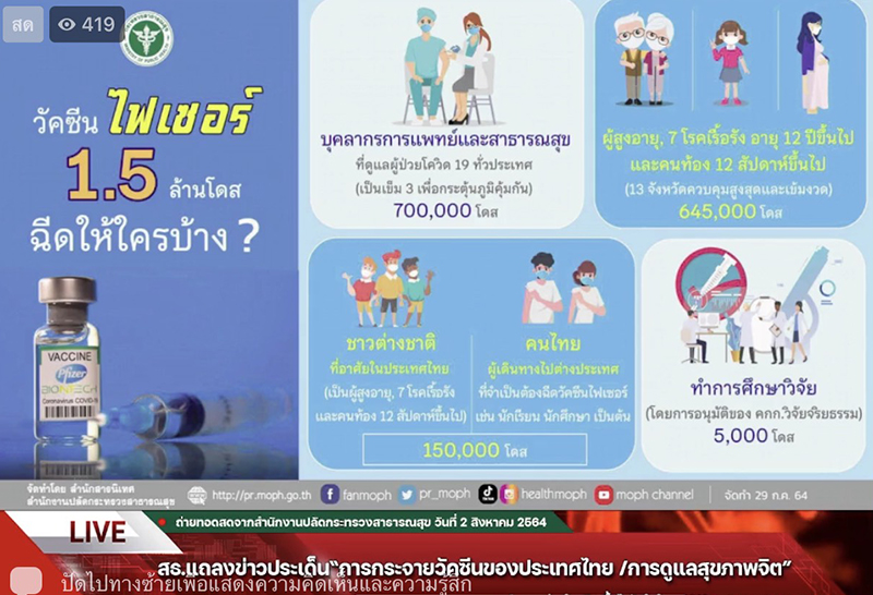 สธ. เผย มติคณะทำงานด้านการให้บริการวัคซีนไฟเซอร์ เสนอให้ รพ. แสดงจำนวนเจ้าหน้าที่ด่านหน้า ที่ได้วัคซีนเพื่อความโปร่งใส