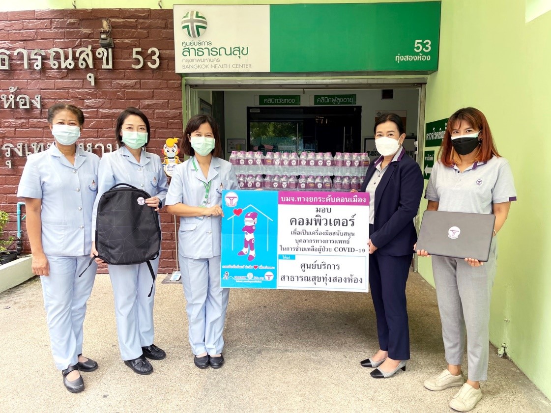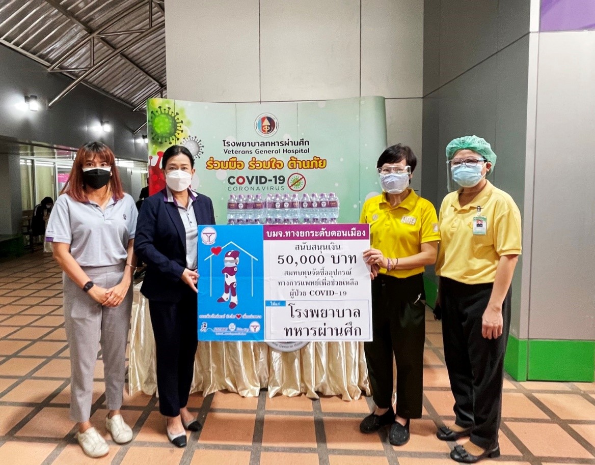 บมจ.ทางยกระดับดอนเมือง (DMT) นำโดยคุณอัจฉรา เจริญพร ผู้อำนวยการฝ่ายทรัยพยากรมนุษย์และสื่อสารองค์กร มอบเงินสนับสนุนการจัดซื้อเครื่องมือและอุปกรณ์ทางการแพทย์และน้ำดื่มให้แก่บุคลากรและผู้ที่เข้ามารักษาตัวด้วยการติดเชื้อไวรัส โควิด-19 ณ โรงพยาบาลราชวิถี 2 , สถาบันธัญญารักษ์, โรงพยาบาลทหารผ่านศึก มอบเครื่องคอมพิวเตอร์โน้ตบุ๊คและน้ำดื่มให้กับศูนย์ส่งเสริมสุขภาพ เขตทุ่งสองห้อง เพื่อให้บุคลากรทางการแพทย์นำไปใช้การดูแลผู้ป่วยที่ติดไวรัส Covid -19