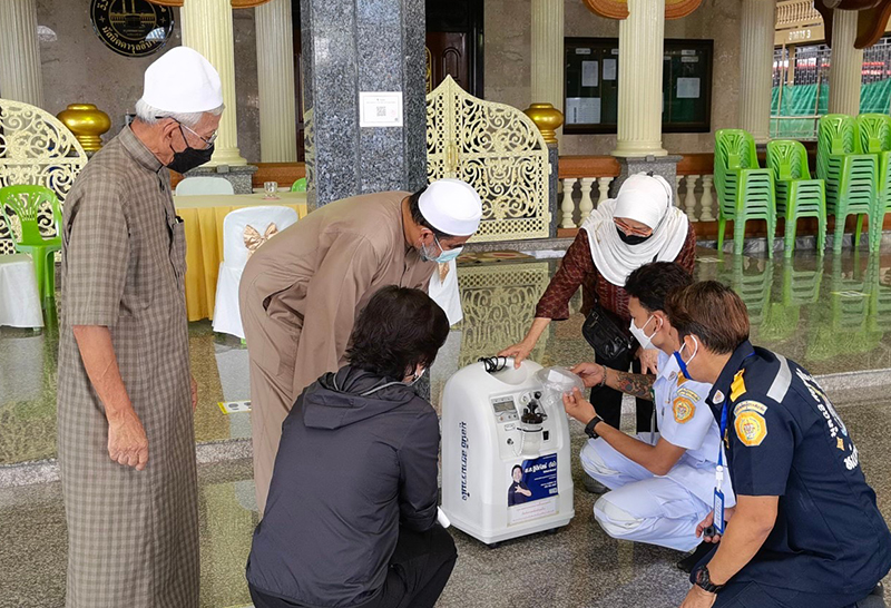 ขณะเดียวกัน มูลนิธิสยามรวมใจ (ปู่อินทร์) พร้อม ทีมงานของตนเองได้นำเครื่องผลิตออกซิเจนมอบให้ทางมัสยิดดารุ้ลอิบาด๊ะห์ (หัวหมากน้อย) ยืมใช้สำหรับช่วยเหลือผู้ป่วยติดเชื้อภายในศูนย์พักคอย และมอบยาฟ้าทะลายโจร พร้อมทุนประเดิมสำหรับกองทุนอาหาร 3 มื้อสำหรับผู้ป่วยติดเชื้อที่มาพักรักษาตัวในศูนย์พักคอยมัสยิดดารุ้ลอิบาด๊ะห์ (หัวหมากน้อย) ด้วย
