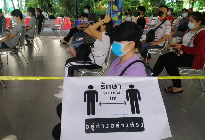 บรรยากาศหน่วยความร่วมมือบริการฉีดวัคซีน โควิด-19 ที่มหาวิทยาลัยหอการค้าไทย ตลอดครึ่งวันเช้า ยังคงมีประชาชนลงทะเบียนผ่านไทยร่วมใจฯทยอยฉีดวัคซีนอย่างต่อเนื่อง ทั้งนี้ด้วยระบบบริหารจัดการที่วางไว้ ทำให้สามารถฉีดได้อย่างรวดเร็ว ไม่มีปัญหาแออัด และป้องกันการแพร่เชื้อได้