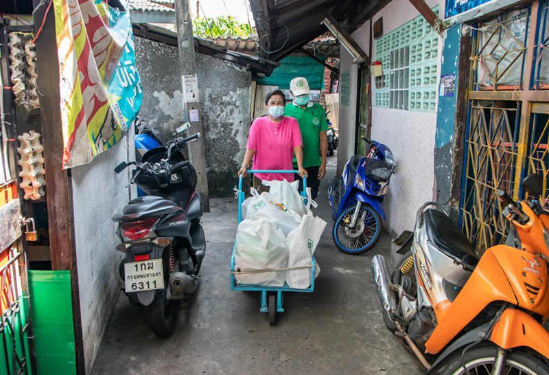 ผศ.พงศ์พร สุดบรรทัด ผู้เชี่ยวชาญด้านสถาปัตยกรรมและการวางผังเมือง ในฐานะแกนนำเครือข่าย URBAN ACTIONS เพื่อการพัฒนาเมือง เปิดเผยว่า วิกฤติโควิด-19 ส่งผลกระทบต่อชีวิตและความเป็นอยู่ของชุมชนทั่วกรุงเทพฯซึ่งเป็นพื้นที่สีแดงที่มีการแพร่ระบาดหนัก รวมถึงชุมชนริมคลองและชุมชนริมทางรถไฟซึ่งมีอยู่เป็นจำนวนมากในกรุงเทพฯ ซึ่งเครือข่าย URBAN ACTIONS และกลุ่มสตาร์ทอัพคนรุ่นใหม่ได้เข้าไปสำรวจในพื้นที่ดังกล่าวพบว่ามีมากถึง 44 ชุมชนที่ได้รับผลกระทบอย่างหนัก แต่ละชุมชนมีผู้ติดเชื้อจำนวนเพิ่มมากขึ้นและมีบางส่วนเข้าระบบการรักษาแบบ Home Isolation ซึ่งไม่สามารถออกไปหาซื้ออาหารและของใช้จำเป็นได้ ด้วยเหตุนี้จึงผนึกกำลังกับเครือข่ายองค์กรเอกชน และมูลนิธิ ต่าง ๆ ได้แก่ เครือข่าย URBAN ACTIONS เพื่อการพัฒนาเมือง มูลนิธิพุทธรักษา บริษัท รถไฟความเร็วสูงสายตะวันออกเชื่อมสามสนามบิน จํากัด และโครงการครัวปันอิ่มของเครือเจริญโภคภัณฑ์ จัดทำถุงยังชีพ บรรจุ ข้าวสาร อาหารแห้ง และของใช้จำเป็นอย่างอื่น สามารถเก็บไว้ได้นาน ทำให้ลดภาระและบรรเทาความเดือดร้อนให้คนในชุมชน ลดความเสี่ยงออกจากบ้าน สามารถป้องกันการแพร่ระบาดโควิด-19 ไม่กระจายไปนอกพื้นที่