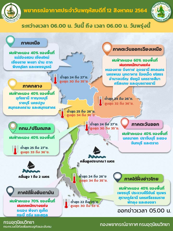 กรมอุตุ เผย ภาคอีสาน และใต้ฝั่งตะวันตก มีฝนหนักบางแห่ง ภาคเหนือ ตะวันออกและกทม. ตก 40% ของพื้นที่