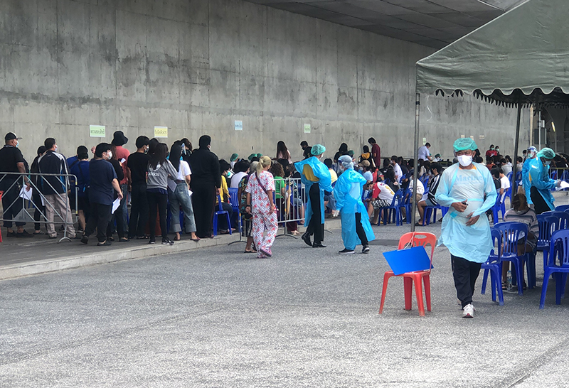 ประชาชนทยอยตรวจโควิด-19 ด้วยชุดตรวจ Antigen Test Kit ใต้สะพานพระราม 8 อย่างต่อเนื่อง ทราบผลไวภายใน 15-30 นาที รับวันละ 1,000 คน