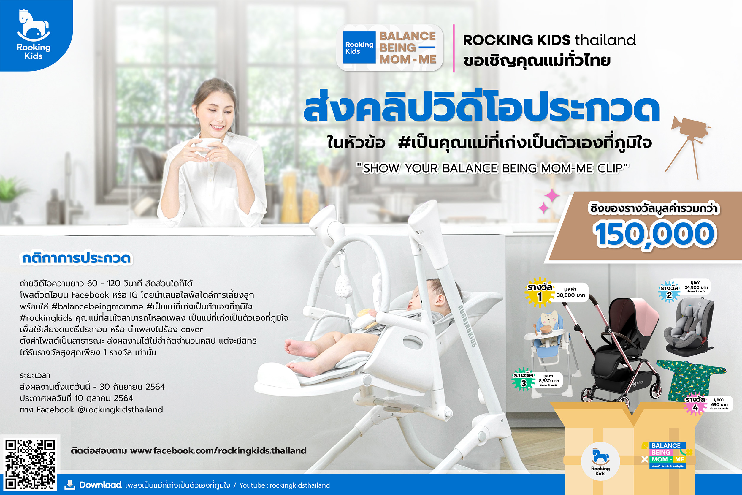 รวมไปถึงบทเพลงที่มุ่งสร้างพลังใจ ในเพลง Proud Mom #เป็นแม่ที่เก่งเป็นตัวเองที่ภูมิใจ โดยศิลปิน คาเรน คล่องตรวจโรค ร่วมถ่ายทอดความหมายดีดี พร้อมทั้งจัดกิจกรรมให้คุณแม่ได้เข้าร่วมประกวด“SHOW YOUR BALANCE BEING MOM-ME CLIP” ถ่ายทอดไลฟ์สไตล์และแนวทางการเลี้ยงลูก นับเป็นการเปิดโอกาสให้ลูกค้า ได้ร่วมสนุกผ่านทางโซเซียลมีเดีย ซึ่งสามารถส่งคลิปแบ่งปันไลฟ์สไตล์การดูแลตัวเอง และการเลี้ยงลูก โดยถ่ายคลิปวีดีโอมีความยาวประมาณ60-120วินาทีแล้วโพสต์คลิปวีดีโอบนหน้าFacebookหรือInstagram ของตัวเอง เปิดสาธารณะ พร้อมแฮชแท็ก #เป็นแม่ที่เก่งเป็นตัวเองที่ภูมิใจ #rockingkids เพื่อให้ทีมงานตรวจสอบ และร่วมชิงรางวัลมูลค่ากว่า150,000บาท ตั้งแต่วันนี้จนถึง30กันยายน2564 ประกาศผลรางวัลผ่านทางหน้าแฟนเพจเฟสบุ๊ก www.facebook.com/rockingthailand เท่านั้น ”