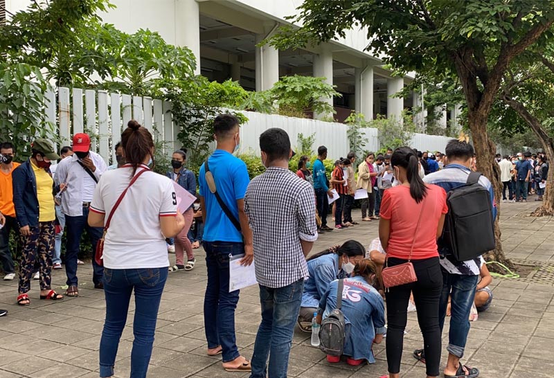 บรรยากาศที่อาคารกีฬาเวสน์ 1 ศูนย์เยาวชนกรุงเทพมหานคร (ไทย – ญี่ปุ่น) เขตดินแดง ซึ่งเป็นจุดให้บริการฉีดวัคซีนผู้ประกันตน ม.33 ที่ทำงานกับบริษัทรับเหมาก่อสร้างทั้งแรงงานไทย-ต่างด้าวที่มีหลักฐานถูกต้องตามกฎหมายพบว่า ล่าสุด ทางบริษัทฯได้นำแรงงานเข้ามาลงทะเบียน รับวัคซีนอย่างต่อเนื่อง โดยเป็นการฉีดวัคซีนซิโนแวค เข็มที่ 1