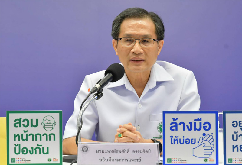นายแพทย์สมศักดิ์ อรรฆศิลป์ อธิบดีกรมการแพทย์ กล่าวว่า ในปัจจุบันผู้ติดเชื้อไวรัสโควิด-19 เพิ่มขึ้นอย่างต่อเนื่อง แต่ละคนจะมีอาการมากน้อยแตกต่างกันไปขึ้นอยู่กับหลายปัจจัย เช่น ภูมิคุ้มกัน และโรคประจำตัวของผู้ป่วย การแพร่กระจายเชื้อไวรัสโควิด-19 นั้นสามารถแพร่ได้ผ่านการสูดดมเข้าทางโพรงจมูกเข้าไปสู่ปอด จากการไอ จาม เสมหะ หรือการสัมผัสสารคัดหลั่งของผู้ที่มีเชื้อไวรัสโควิด-19 หลังจากติดเชื้อผู้ป่วยอาจไม่มีอาการหรือมีอาการทั่วไป เช่น มีไข้ ไอ เจ็บคอ จมูกไม่ได้กลิ่น ลิ้นไม่รับรส ผู้ที่มีความเสี่ยงที่จะส่งผลให้เกิดความรุนแรงของโรคและเชื้ออาจลงสู่ปอดได้ คือ ผู้สูงอายุ และกลุ่มที่มีโรคร่วม ได้แก่ โรคอ้วน โรคเบาหวาน โรคทางเดินหายใจเรื้อรัง โรคหัวใจและหลอดเลือด โรคไตวายเรื้อรัง โรคหลอดเลือดสมอง โรคมะเร็งทุกชนิด และผู้ที่มีภูมิคุ้มกันต่ำ กลุ่มเสี่ยงเหล่านี้จึงควรระมัดระวังตนเองมากเป็นพิเศษกว่าคนปกติทั่วไป เพราะหากเชื้อลงสู่ปอดแล้ว อาจส่งผลต่อระบบภายในอื่นๆ ของร่างกายได้