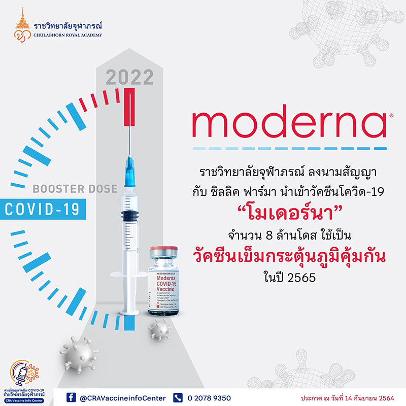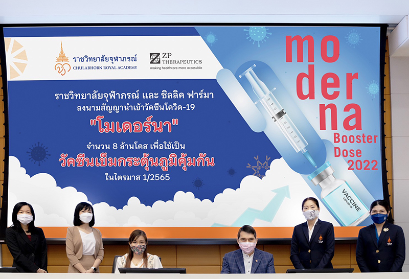 ราชวิทยาลัยจุฬาภรณ์ ลงนามสัญญากับ ซิลลิค ฟาร์มา นำเข้าวัคซีนโควิด-19 “โมเดอร์นา” จำนวน 8 ล้านโดส ใช้เป็นวัคซีนเข็มกระตุ้นภูมิคุ้มกันในปี 2565