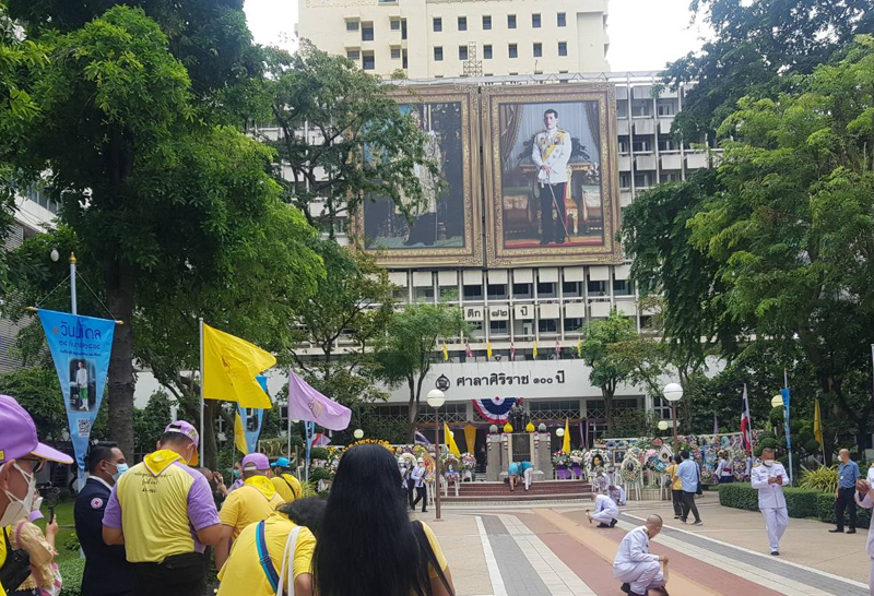 ประชาชนรอเฝ้าฯ รับเสด็จพระบาทสมเด็จพระเจ้าอยู่หัว และสมเด็จพระนางเจ้าฯ พระบรมราชินี ทรงวางพวงมาลา “วันมหิดล” ณ โรงพยาบาลศิริราช