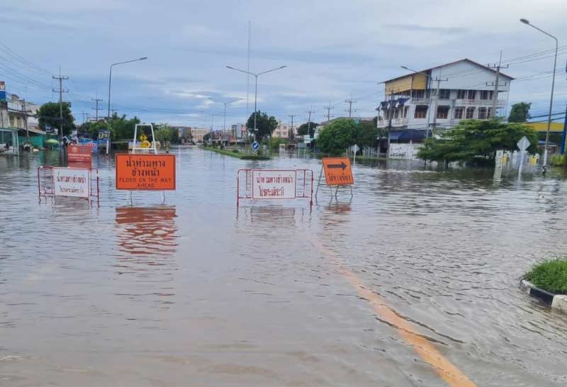 แขวงทางหลวงสุโขทัย สั่งปิดถนนหลายจุด เหตุน้ำท่วมสูง