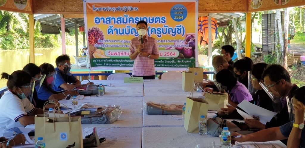 เมื่อวันที่23กันยายน 2564 สำนักงานตรวจบัญชีสหกรณ์ชุมพร นำโดยนางรัตนาภรณ์ ชัยรัตนวงศ์ หัวหน้าสำนักงานฯ พร้อมด้วยบุคลากรในสังกัด จัดประชุมปฏิบัติการอาสาสมัครเกษตรด้านบัญชี (ครูบัญชี) ระดับจังหวัดประจำปี 2564 เรื่อง ซักซ้อมแนวทางการปฏิบัติงานเพื่อเตรียมความพร้อมอาสาสมัครเกษตรด้านบัญชี เพื่อการปฏิบัติงานส่งเสริมการจัดทำบัญชีรายบุคคลในพื้นที่ระบบส่งเสริมการเกษตรแปลงใหญ่ ณ โครงการท่องเที่ยงเชิงอนุรักษ์ล่องแพวิสาหกิจชุมชนหมู่ 12 ตำบลบางลึก อำเภอเมือง จังหวัด ชุมพร
