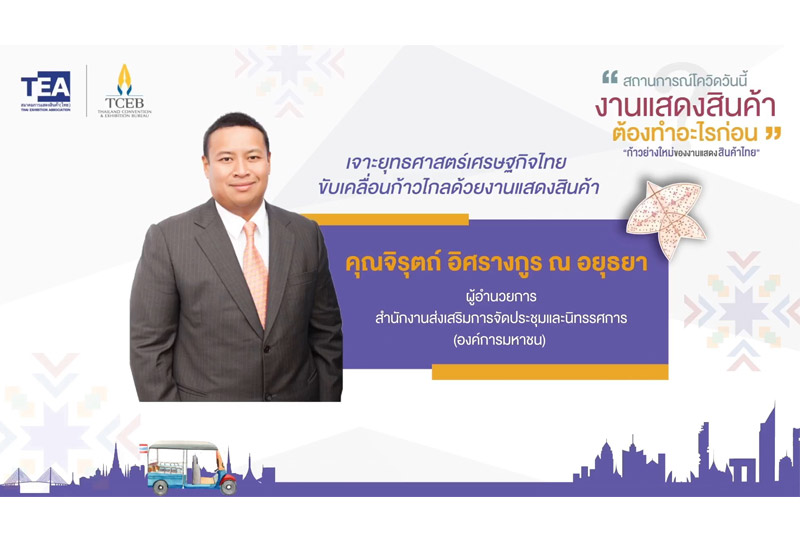 นายจิรุตถ์ อิศรางกูร ณ อยุธยา ผู้อำนวยการสำนักงานส่งเสริมการจัดประชุมและนิทรรศการ (องค์การมหาชน) หรือ ทีเส็บ เปิดเผยว่า “ปัจจุบันมีงานแสดงสินค้าในประเทศทุกภูมิภาคที่มีแผนการจัดงานประจำปีและสามารถจัดงานได้ทันที เมื่อประเทศเริ่มมีความพร้อม “การจัดงานแสดงสินค้า” จึงเป็นแพลตฟอร์มเจรจาธุรกิจสำคัญที่สามารถพลิกฟื้นเศรษฐกิจได้ในระยะสั้น ทีเส็บเตรียมการเร่งกระตุ้นอุตสาหกรรมไมซ์ เปิดแผนขับเคลื่อนงานแสดงสินค้าในประเทศ บูรณาการการทำงานร่วมกับหน่วยงานรัฐและเอกชน ภายใต้กลยุทธ์การเสริมความแกร่งระดับชาติ เตรียมส่งเสริมการจัดงานในจังหวัดและเมืองไมซ์ที่มีศักยภาพความพร้อม มุ่งสร้างงานและสนับสนุนงานตามอัตลักษณ์และจุดเด่นของจังหวัด พร้อมกระจายการจัดงานสู่ภูมิภาค โดยเฉพาะการจัดงานแสดงสินค้าแบบ B2B เพื่อฟื้นฟูเศรษฐกิจในประเทศอย่างเร่งด่วน เนื่องจากการจัดงานแสดงสินค้าก่อให้เกิดธุรกรรมทางเศรษฐกิจในระยะเวลาอันสั้น”