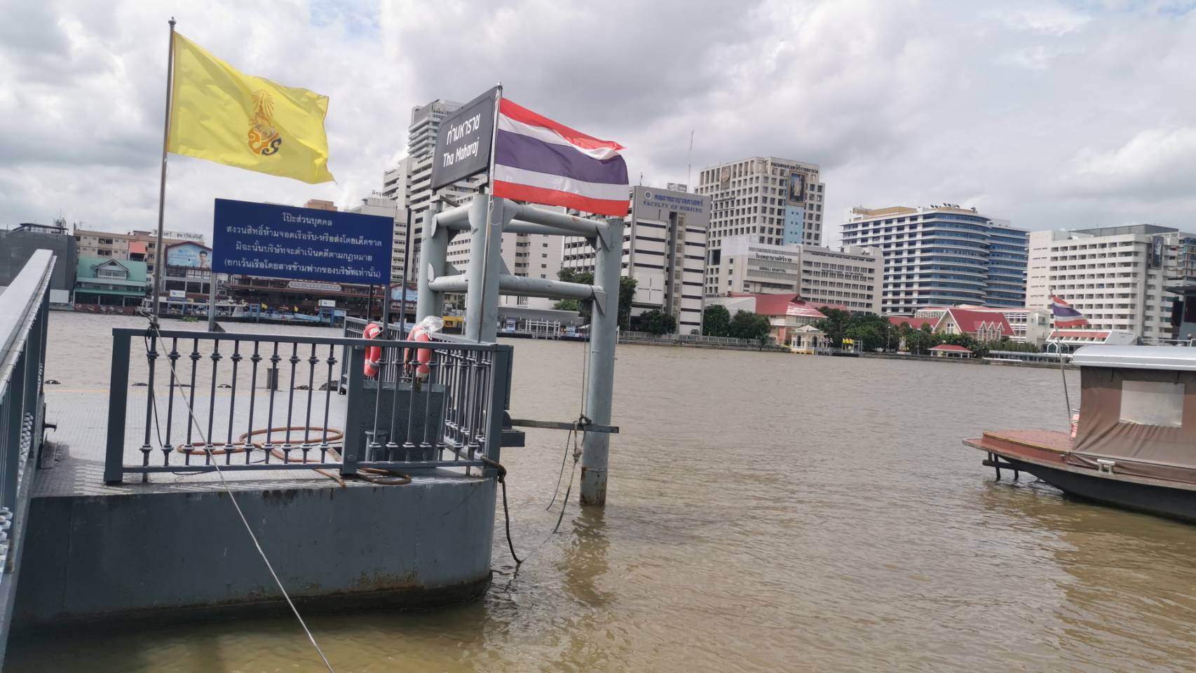 บรรยากาศที่ท่าเรือมหาราชและท่าเรือวังหลัง พบว่ามีการเตรียมพร้อมรับมือระดับน้ำของแม่น้ำเจ้าพระยาที่เพิ่มสูงขึ้นโดยเฉพาะในช่วงเย็นของวันนี้ที่ระดับน้ำเจ้าพระยาที่จะเพิ่มสูงสุด โดยจากข้อมูลของสำนักงานการระบายน้ำทำการวัดบริเวณปากคลองตลาดของ กทม.สูงสุดอยู่ที่ระดับ 1.80 เมตร จากระดับน้ำทะเลปานกลาง ซึ่งอาจจะส่งผลให้น้ำเอ่อล้นออกมาตามท่อระบายน้ำและเอ่อท่วมบริเวณทางเดินและร้านค้าต่างๆบริเวณท่าเรือ โดยพบว่ากรุงเทพมหานครและร้านค้าในพื้นที่ได้นำกระสอบทราบว่าวางเป็นคันกั้นน้ำไว้ป้องกันไม่ให้ไหลเข้าท่วมภายในร้าน ตลอดจนวางทำเป็นทางเดินสูงจากพื้นที่ประมาณ 30-40 ซม.ในจุดลุ่มต่ำ และเตรียมสายยางสูบน้ำเพื่อสูบน้ำออกจากพื้นที่หลังน้ำลดลง