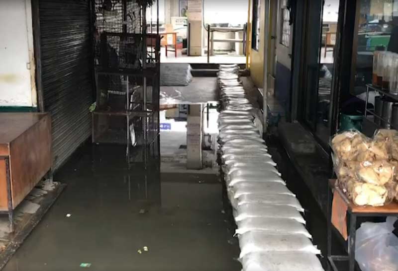 ตลาดวังหลังน้ำท่วมขังต่อเนื่องตั้งแต่ 9 โมงเช้า คาดอีก 2 ชั่วโมงน้ำลด