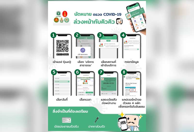 เพื่อรับรหัสการนัดหมาย จากนั้นสามารถเข้ารับบริการได้ โดยแสดงหลักฐานดังกล่าวพร้อมกับบัตรประจำตัวประชาชน