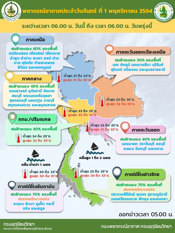 อุตุเตือน!มีฝนตกหนักบางแห่งในภาคใต้