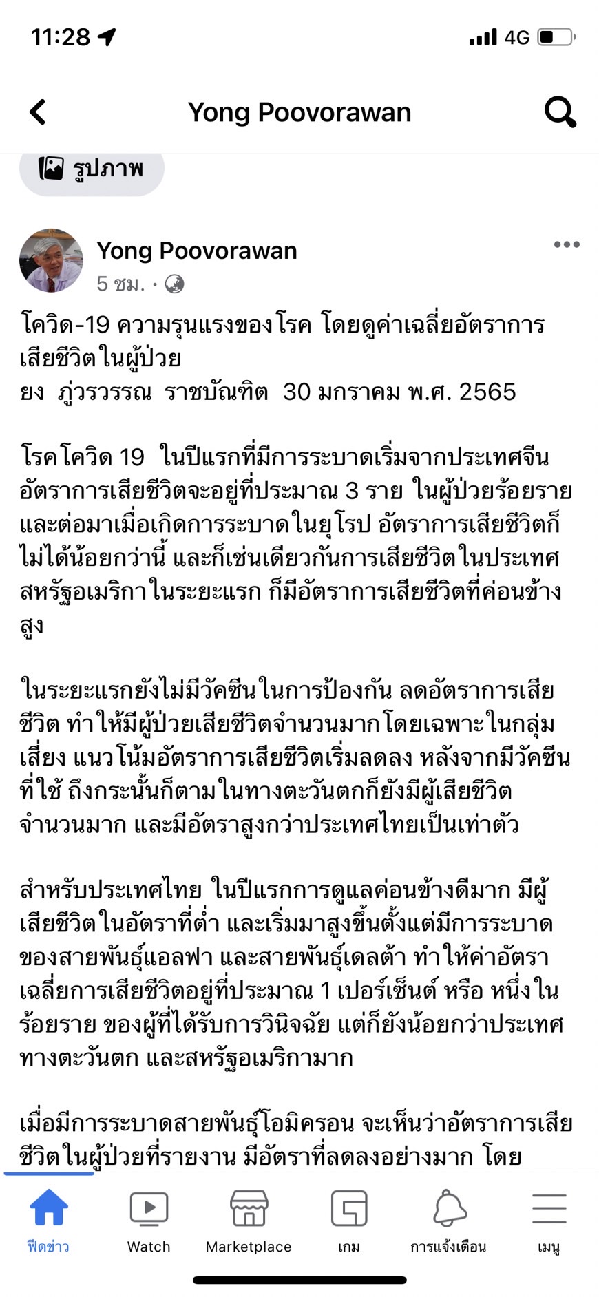 ศ.นพ.ยง ภู่วรวรรณ หัวหน้าศูนย์เชี่ยวชาญเฉพาะทางด้านไวรัสวิทยาคลินิก ภาควิชากุมารเวชศาสตร์ คณะแพทยศาสตร์ จุฬาลงกรณ์มหาวิทยาลัย โพสต์เฟซบุ๊กเรื่อง โควิด-19 ความรุนแรงของโรค โดยดูค่าเฉลี่ยอัตราการเสียชีวิตในผู้ป่วย (ยง ภู่วรวรรณ ราชบัณฑิต 30 มกราคม พ.ศ. 2565) ว่า โรคโควิด 19 ในปีแรกที่มีการระบาดเริ่มจากประเทศจีน อัตราการเสียชีวิตจะอยู่ที่ประมาณ 3 ราย ในผู้ป่วยร้อยราย และต่อมาเมื่อเกิดการระบาดในยุโรป อัตราการเสียชีวิตก็ไม่ได้น้อยกว่านี้ และก็เช่นเดียวกันการเสียชีวิตในประเทศสหรัฐอเมริกาในระยะแรก ก็มีอัตราการเสียชีวิตที่ค่อนข้างสูง