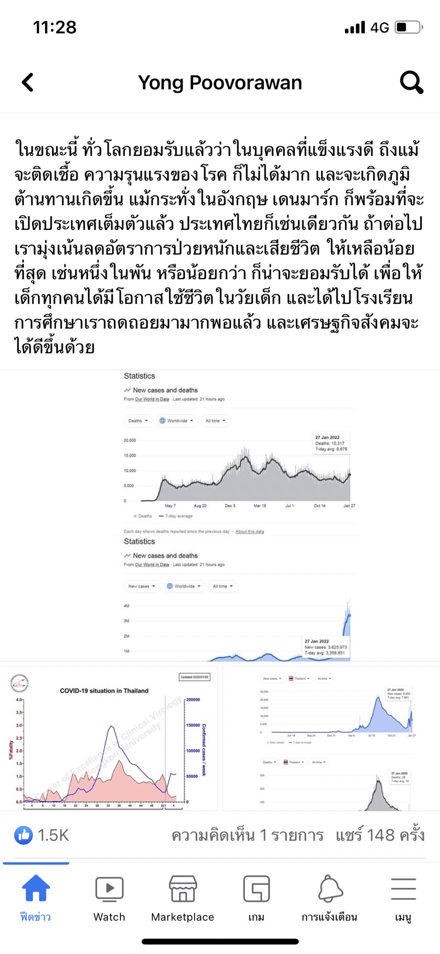 ในขณะนี้ ทั่วโลกยอมรับแล้วว่าในบุคคลที่แข็งแรงดี ถึงแม้จะติดเชื้อ ความรุนแรงของโรค ก็ไม่ได้มาก และจะเกิดภูมิต้านทานเกิดขึ้น แม้กระทั่งในอังกฤษ เดนมาร์ก ก็พร้อมที่จะเปิดประเทศเต็มตัวแล้ว ประเทศไทยก็เช่นเดียวกัน ถ้าต่อไป เรามุ่งเน้นลดอัตราการป่วยหนักและเสียชีวิต ให้เหลือน้อยที่สุด เช่นหนึ่งในพัน หรือน้อยกว่า ก็น่าจะยอมรับได้ เพื่อให้เด็กทุกคนได้มีโอกาสใช้ชีวิตในวัยเด็ก และได้ไปโรงเรียน การศึกษาเราถดถอยมามากพอแล้ว และเศรษฐกิจสังคมจะได้ดีขึ้นด้วย
