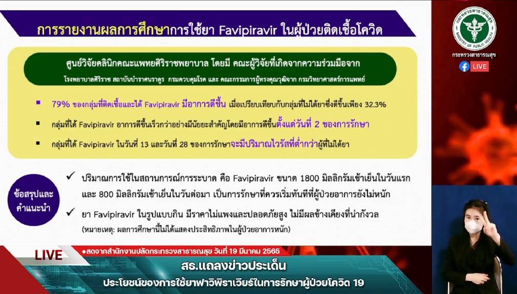 สธ.ขอประสิทธิภาพ “ยาฟาวิพิราเวียร์” ขออย่าด้อยค่ายา เหมือนวัคซีนป้องกันโควิด19