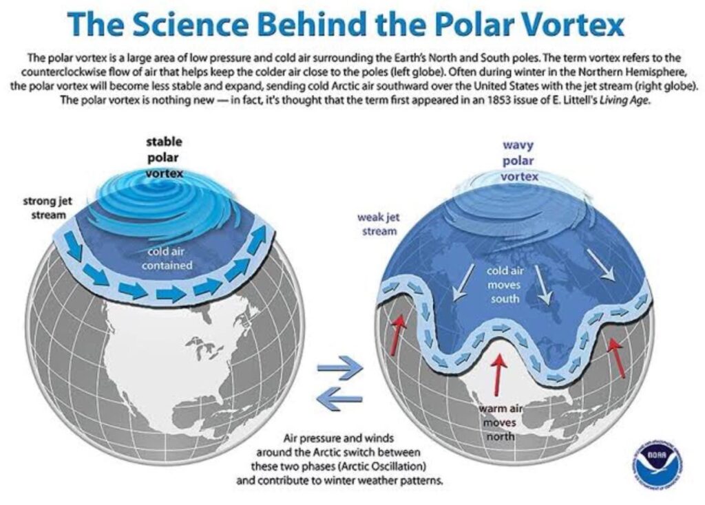 ความเยือกเย็นจึงถูกดันมาเป็นทอดๆ ปรากฏการณ์นี้ เรียกว่า Polar Vortex แม้จะย้วยมาเพียงระยะเวลาสั้นๆ แต่ก็ชี้ให้เราตระหนักว่า โลกใบนี้เล็กกว่าที่เราเคยรู้จักสิ่งที่เกิดกับภาวะโลกร้อน ที่ขั้วโลกเหนือ สะเทือนมาถึงเส้นศูนย์สูตรได้อย่างรวดเร็วเหมือนกันในทางกลับกัน กำแพงลมเย็นที่ถูกไออุ่นเบียดให้แคบลงก็แปลว่าจะมีไอร้อนเบียดเข้าหาขั้วโลกเช่นกัน ปีนี้เราคงได้เห็นสภาวะภูมิอากาศเปลี่ยนแปลงที่จะเป็นผลตามมา