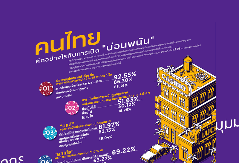 “สวนดุสิตโพล”มหาวิทยาลัยสวนดุสิต สำรวจความคิดเห็นของประชาชนทั่วประเทศ จำนวนทั้งสิ้น 1,929 คน กรณี “การเปิดบ่อนพนัน” ทำการสำรวจระหว่างวันที่ 27 มกราคม – 5 กุมภาพันธ์ 2564 เมื่อถามถึงประชาชนให้ความสำคัญกับการแพร่ระบาดของโควิด-19 จากกรณีใด พบว่า ร้อยละ 92.55 ระบุ การลักลอบเข้าเมืองของแรงงานเถื่อน รองลงมาร้อยละ 86.30 ระบุบ่อนการพนันผิดกฎหมายร้อยละ 63.36 ระบุ สถานบันเทิง